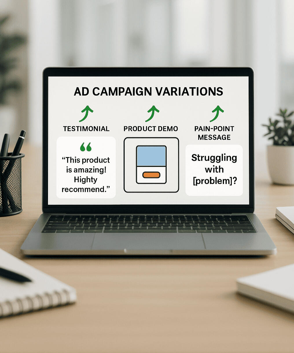 Ad campaigns burn out fast. Testing gets expensive. Creatives that worked last month flop today. We solve this by delivering a constant stream of fresh, test-ready creatives designed to lower your CPA and maximize ROAS.